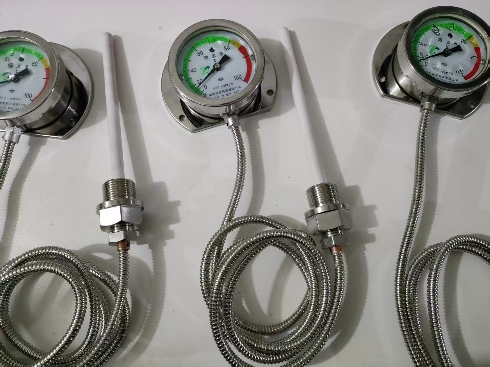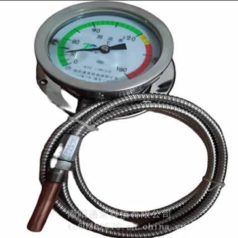 新一代液体压力式温度计是南阳通常科技有限公司开发的系列温度仪表,克服了 原仪表性能单一、可靠性差以及温包体积大的缺点,将测温元件体积缩小到原来的1/30或1/60,创造性地将传感器热电阻安装于测温元件内,实现了机电一体化的 测温功能。形成了以液体压力式温度计为基本测温仪表的远传、防爆、防震、防腐、电接点、温度信号变送等多功能、系列化温度仪表。